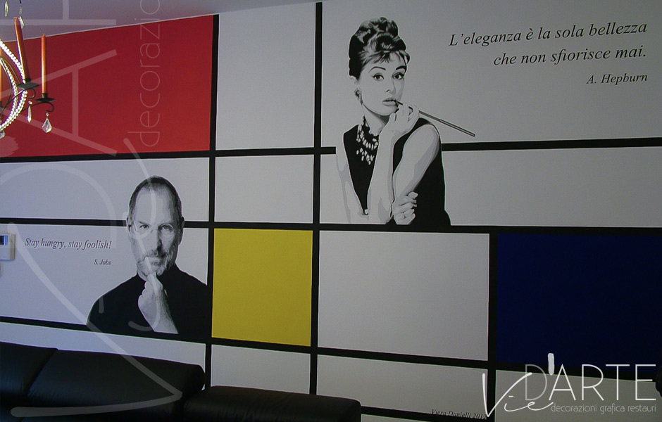 Mondrian con Steve Jobs e Audrey Hepburn, decorazione su murovieradanielli2024-01-11T15:09:57+01:00